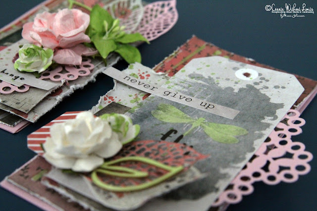 I´m up with these cards at the Berry71Bleu blog today.The April moodboard inspiered me to make two "cheer up" card that can be sent to a friend that really need some support. The sentiment stickers & papers from the new 7dots Studio collection Homegrown works so well with Glimmer Mist sprays in Lime Green. I just love the transformation from a white flower to a zinging green.
